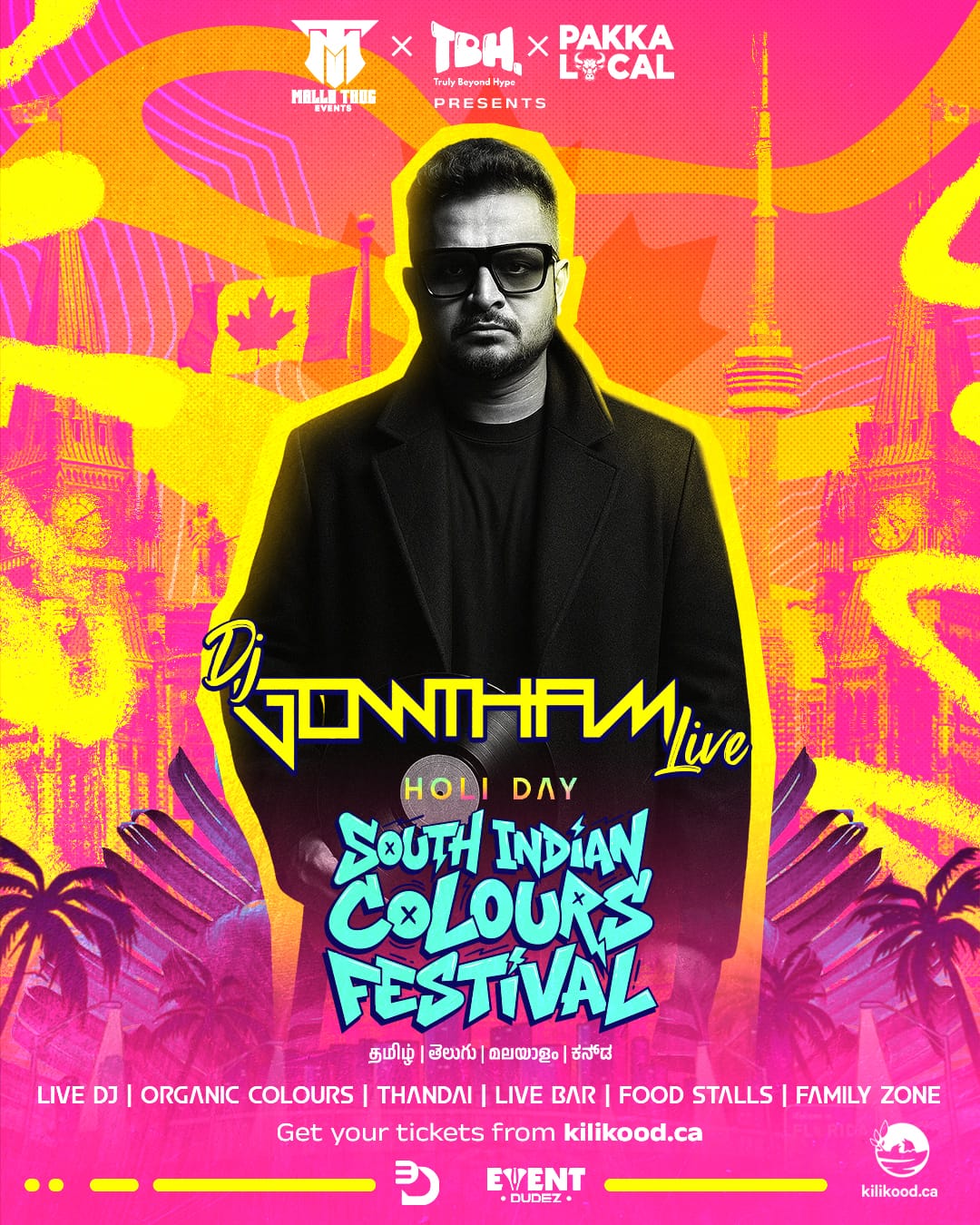 MALLU THUG EVENTS × TBH × Pakka Local proudly present Toronto’s first-ever South Indian exclusive indoor Holi celebration, built for a 1000+ capacity crowd and designed to celebrate South Indian culture the right way.
