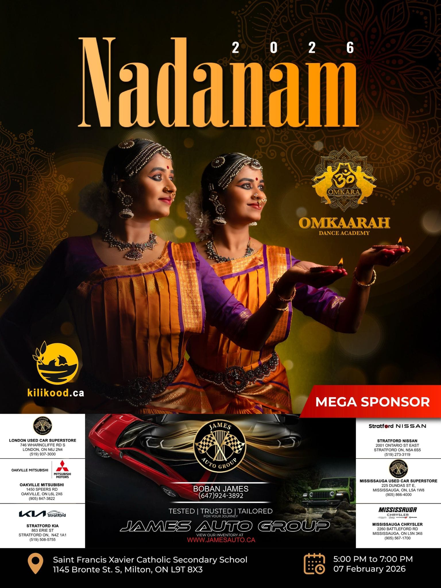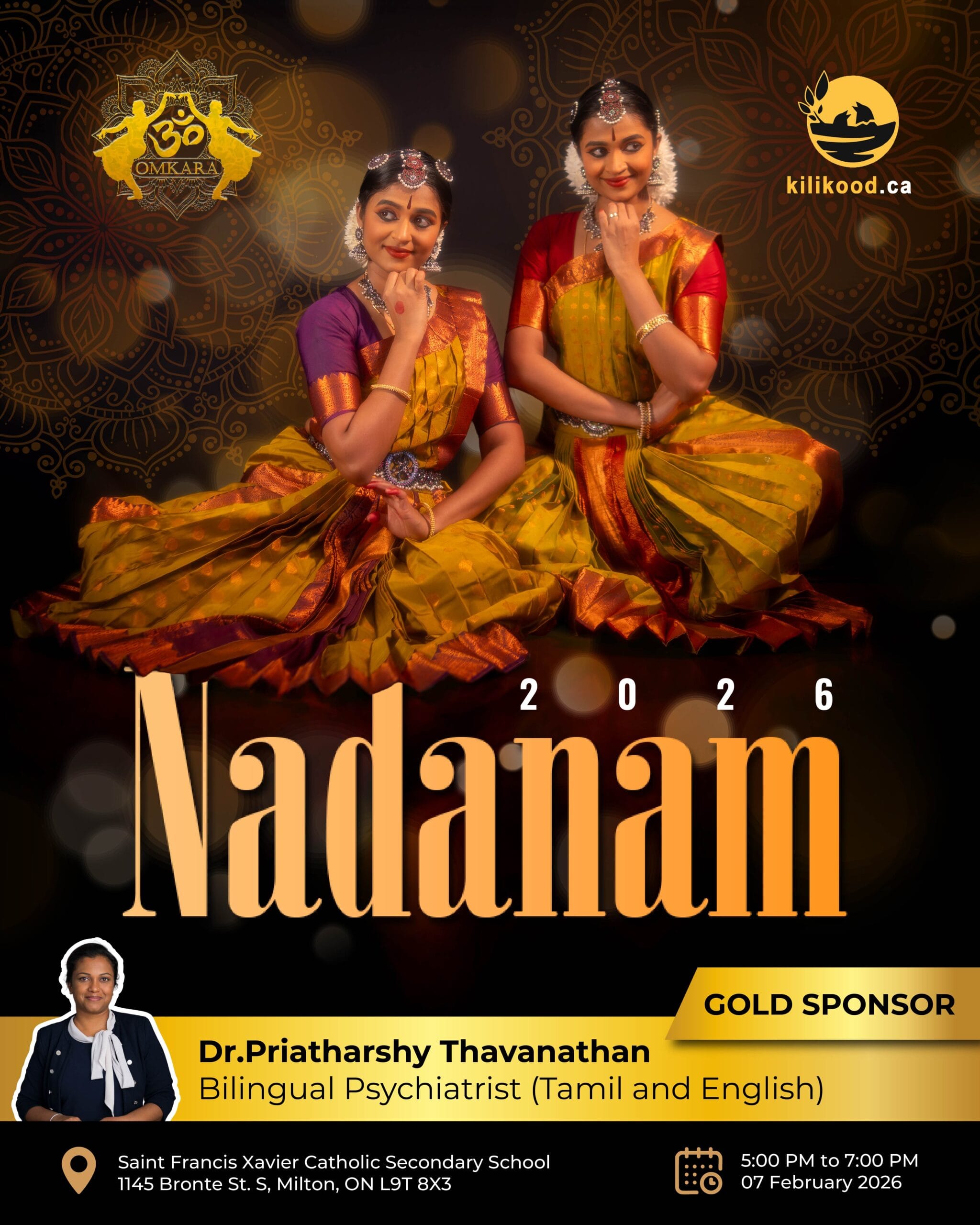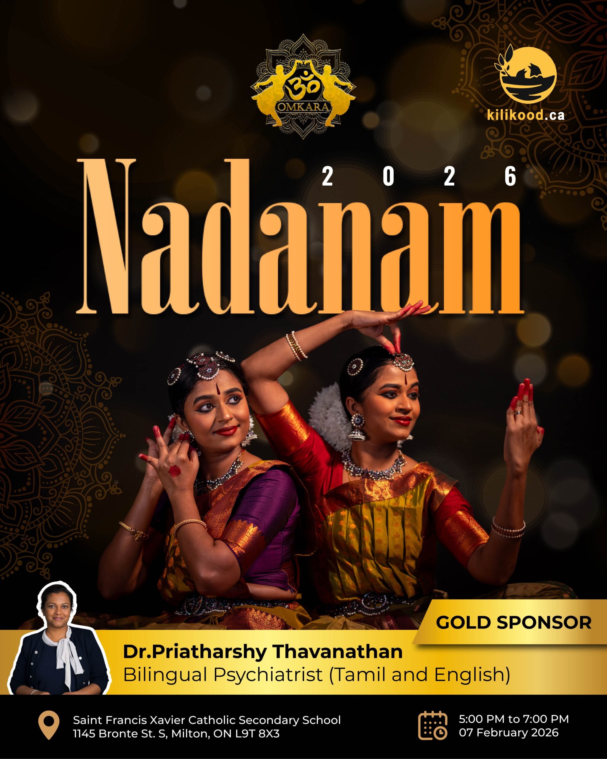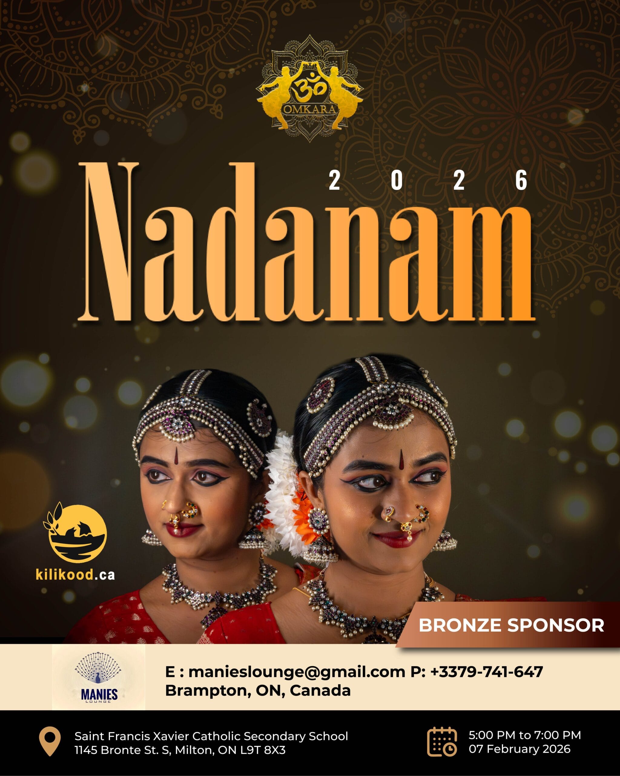 Nadanam 2026 is a Bharatanatyam & semi-classical dance concert presented by Omkaarah Dance Academy, featuring student performances that celebrate Indian culture, rhythm, and devotion.