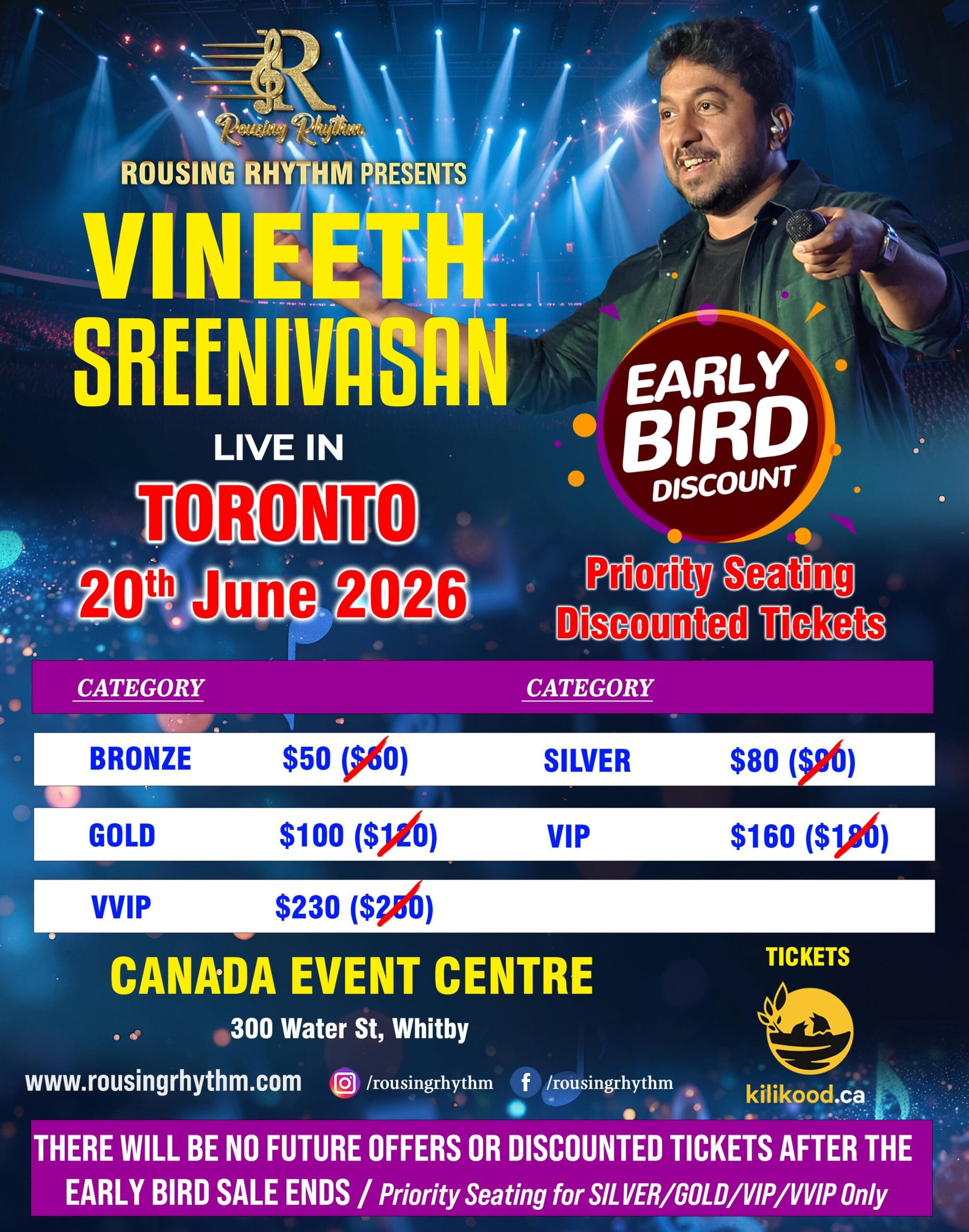 🎶 Vineeth Sreenivasan Live in Concert Toronto, Canada Tour 2026 🎤